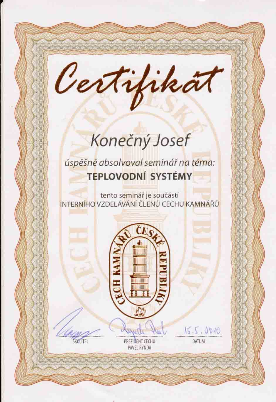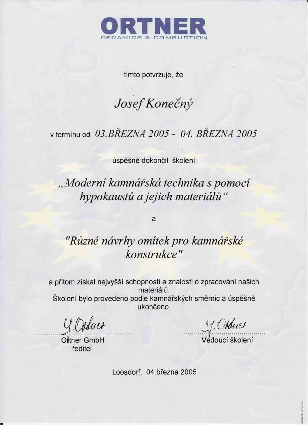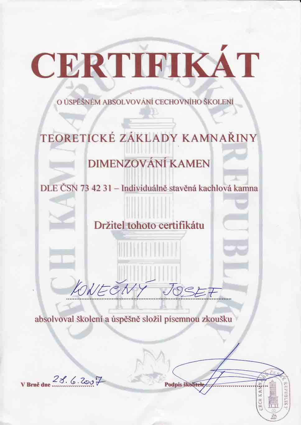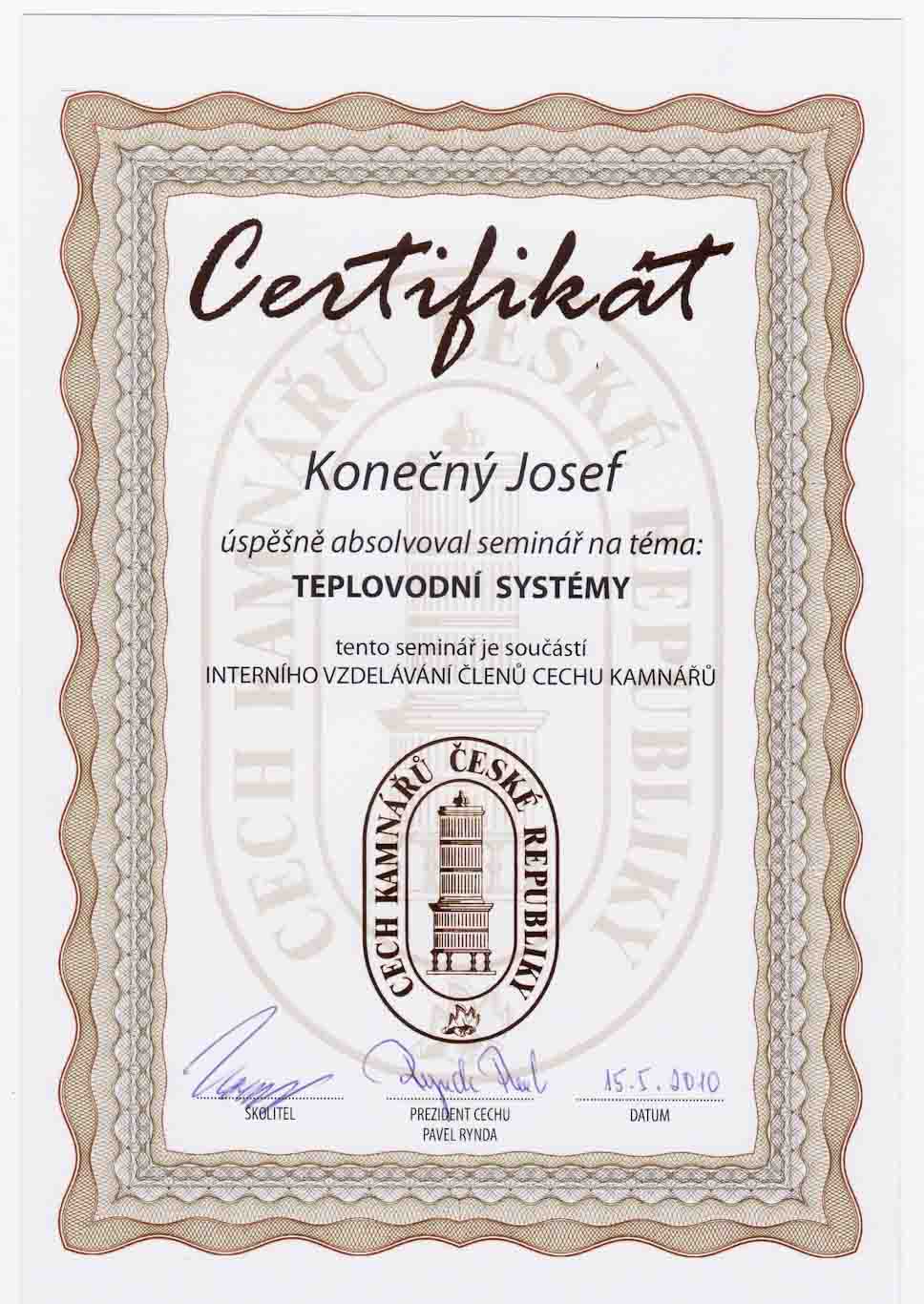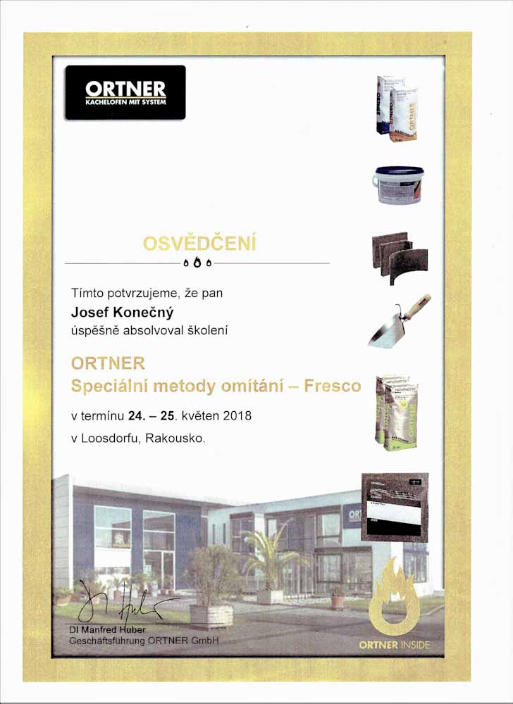 Snažím se jít s dobou, znám všechny dostupné technologie a materiály. Absolvuji školení Cechu kamnářů i hlavních výrobců krbových vložek a kamen v ČR, Rakousku a Německu.