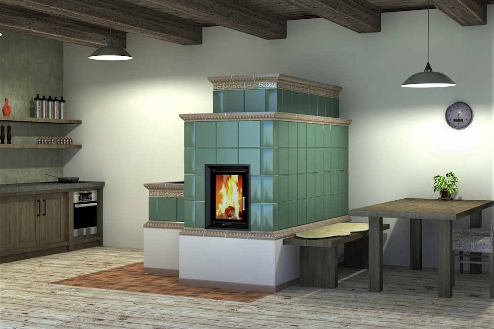 Kachlová kamna se sporákem. Uvaříte, upečete, vyhřejete mírně chalupu. V zimních měsících přijde vhod zatopit v hlavních kamnech, která hřejí zdravým sálavým teplem přes půl dne. Po kliknutí na obrázek vidíte jak lze úsporně vyřešit stolování a ještě si při večeři prohřát záda.
