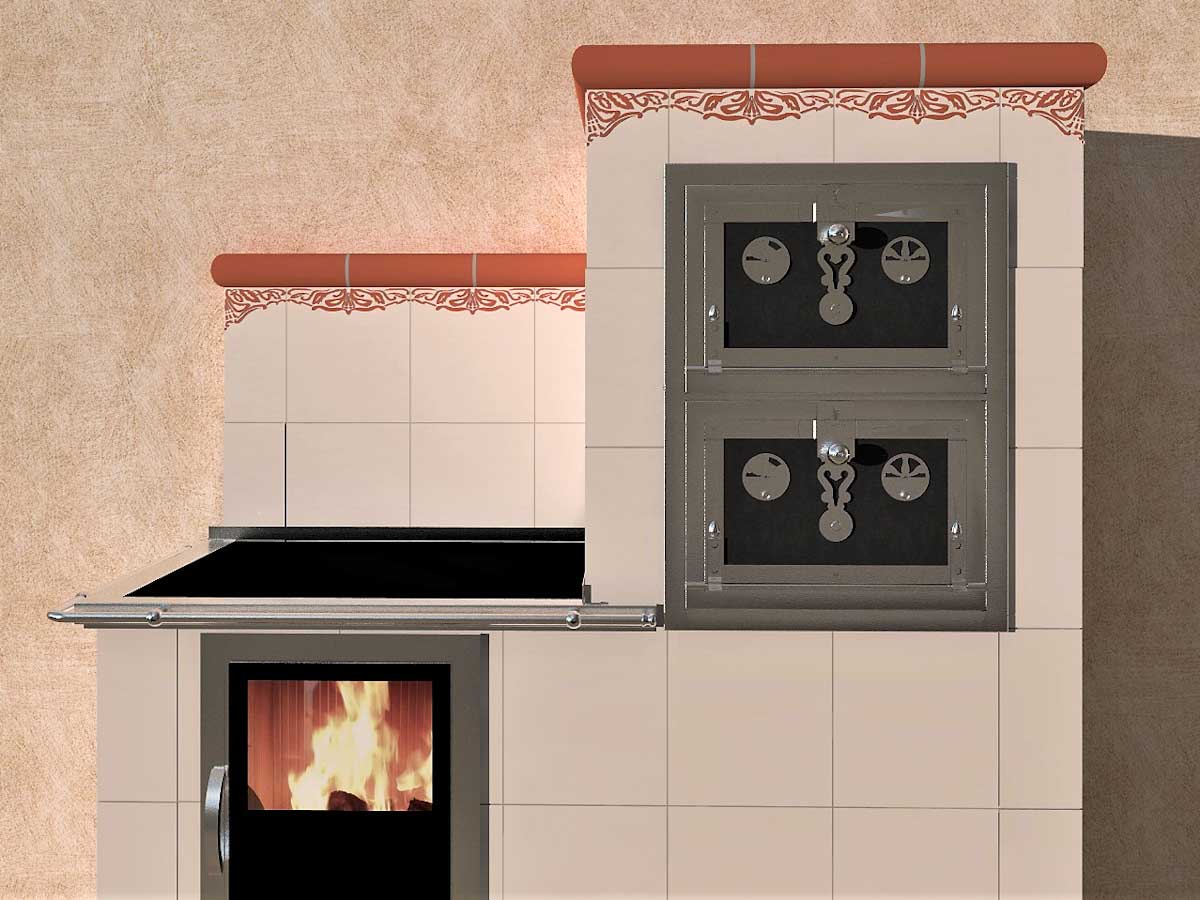 Kachlový sporák vybavený ohništěm s externím přívodem vzduchu a prosklenými dvířky. Splňuje normy které budou platit od roku 2021. Při návrhu máme k dispozici české i zahraniční výrobce kachloví, neváhejte nás kontaktovat pro individuální nabídku.