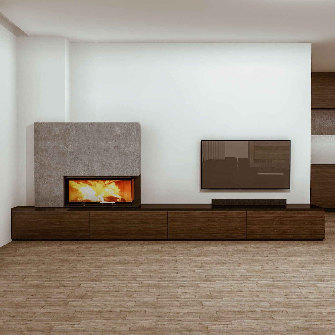 Navrhuji krby podle nejnovějších trendů, zajistím kompletní realizaci včetně truhlářských a kamenických prací. Na projektu vidíte krbovou vložku Hoxter Ecka 90/40/40h, integrovanou do TV stolku. Díky horní antracitové žulové desce stavba splňuje protipožární předpisy. Moderní krby nejsou jenom hezké, krbové vložky které nabízím mají dokonalý oplach skla, jednoduše lze regulovat výkon a díky vysoké účinnosti spalování šetří palivo a životní prostředí.