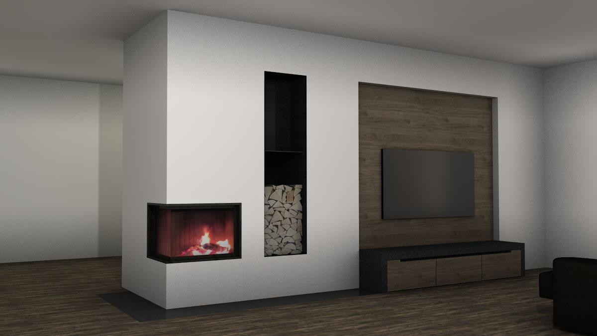 Navrhuji krby podle nejnovějších trendů, zajistím kompletní realizaci včetně truhlářských a kamenických prací. Na projektu vidíte krbovou vložku Hoxter Ecka 90/40/40h, integrovanou do TV stolku. Díky horní antracitové žulové desce stavba splňuje protipožární předpisy. Moderní krby nejsou jenom hezké, krbové vložky které nabízím mají dokonalý oplach skla, jednoduše lze regulovat výkon a díky vysoké účinnosti spalování šetří palivo a životní prostředí.